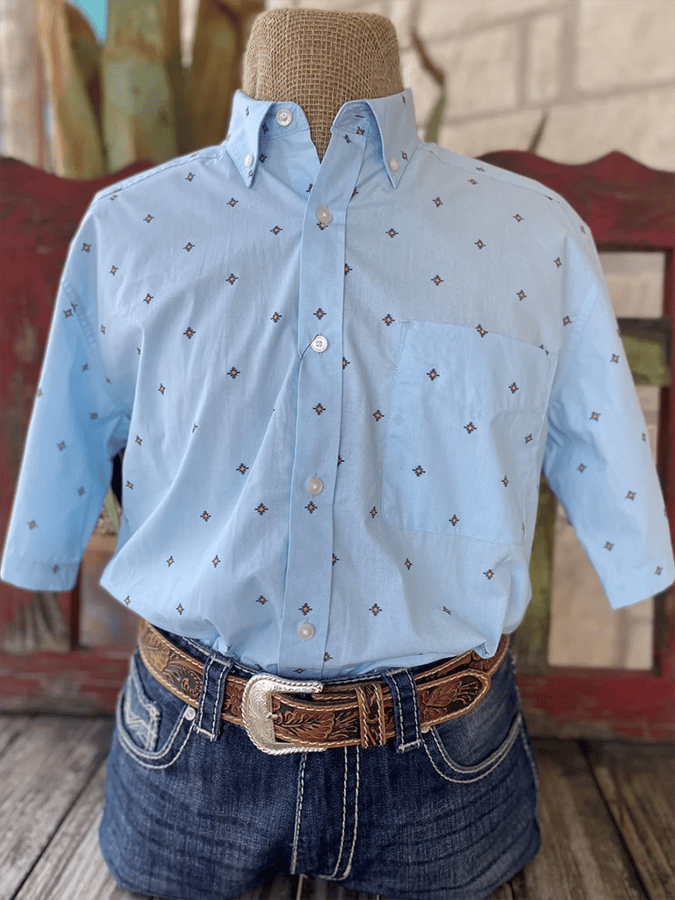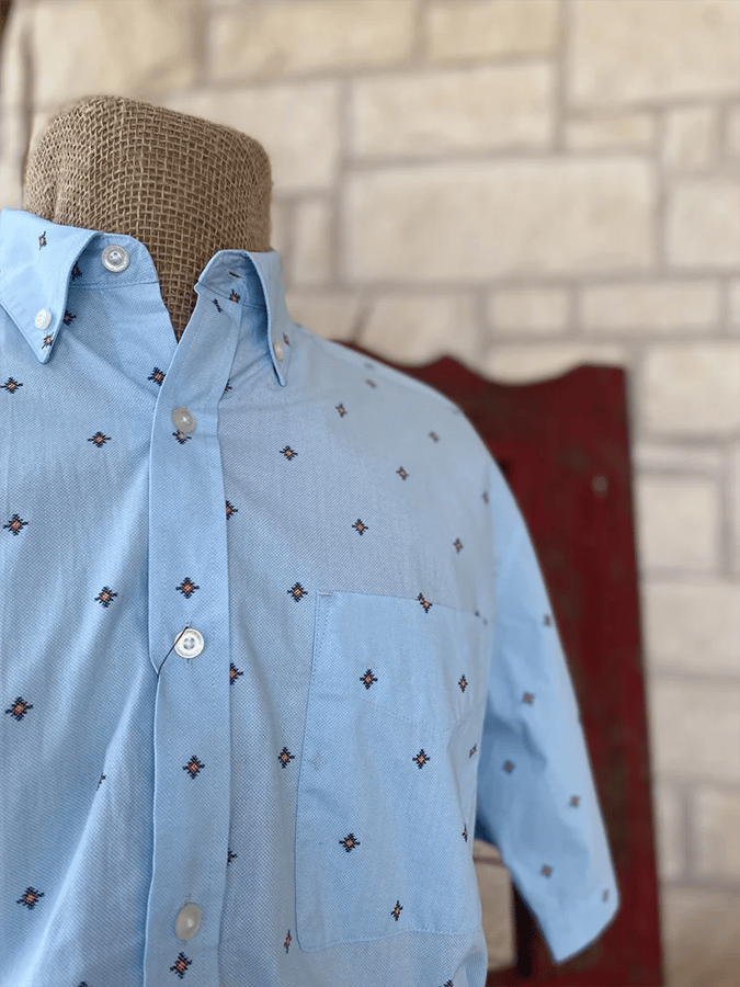 Men's Western Denim Style Pocket Design Geometric Casual Short Sleeve Shirt