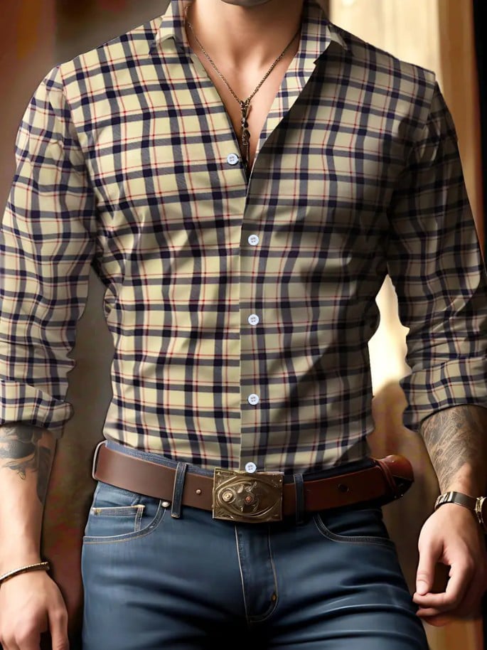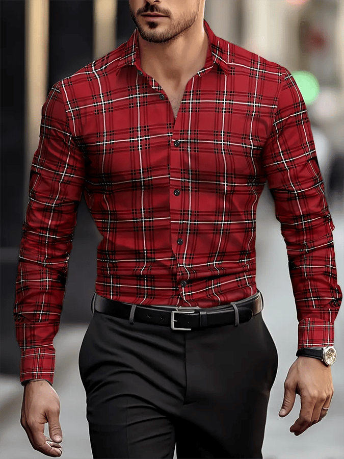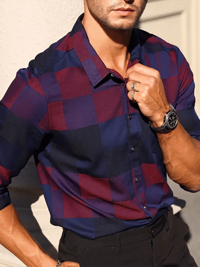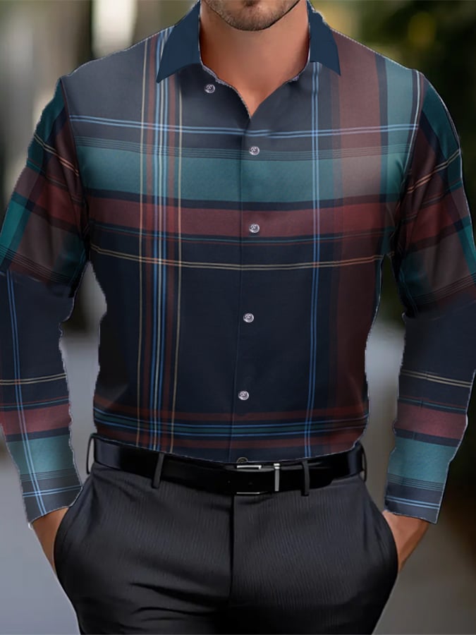 Men's Business Checkered Print Shirt