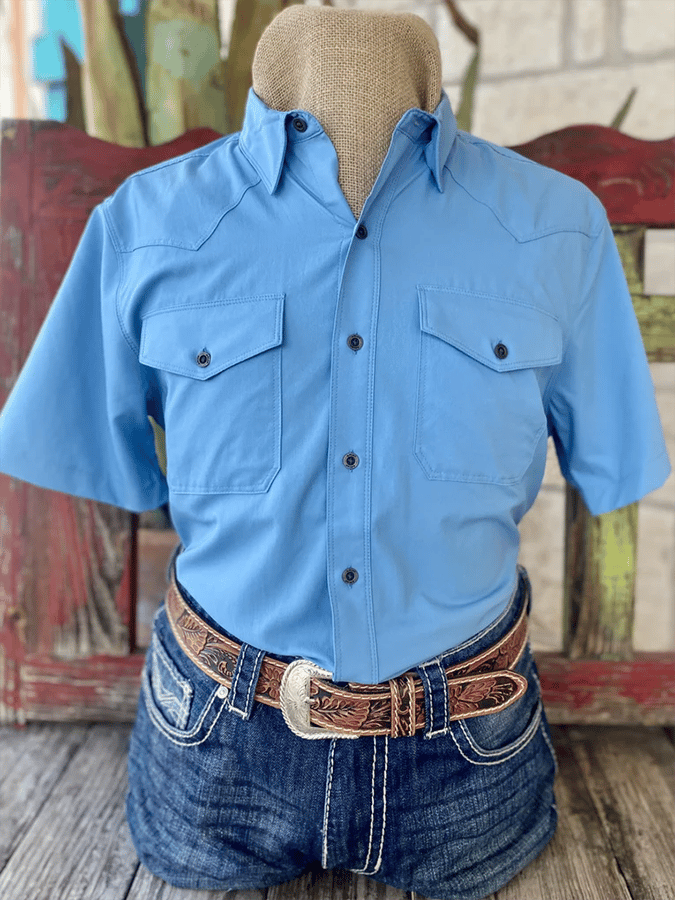 Men's Western Denim Style Pocket Design Solid Color Casual Short Sleeve Shirt