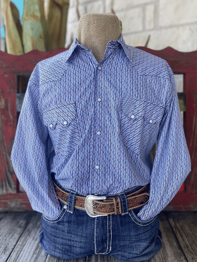 Men's Western Denim Style Pocket Design Striped Casual Long Sleeve Shirt