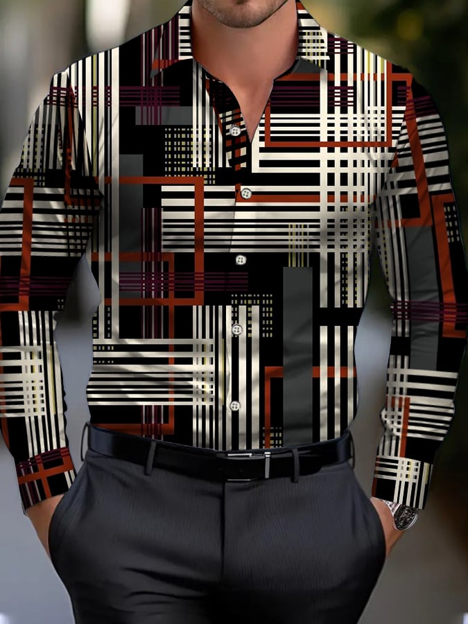 Men's Geometric Design Business Casual Shirt