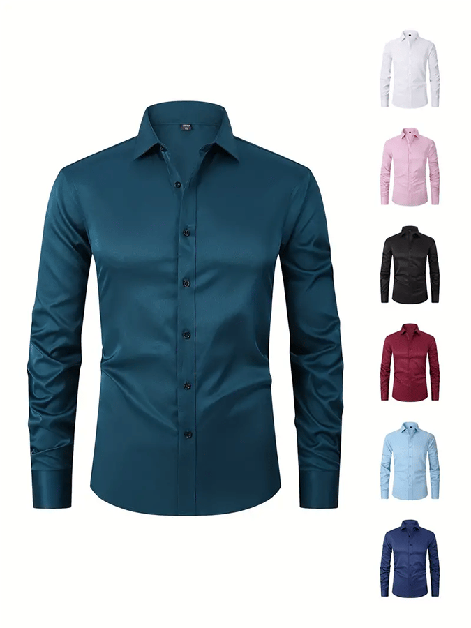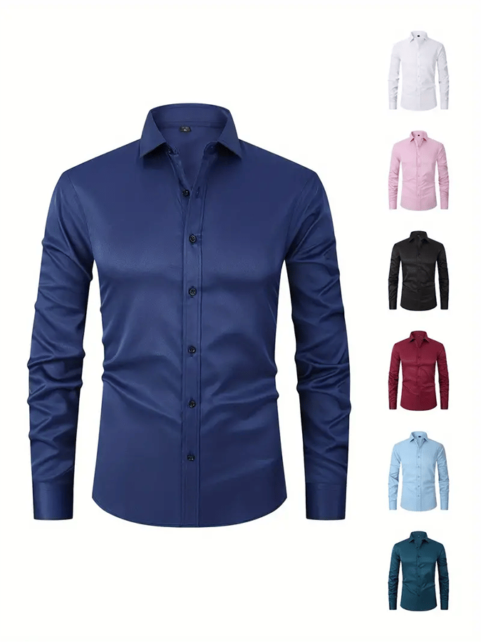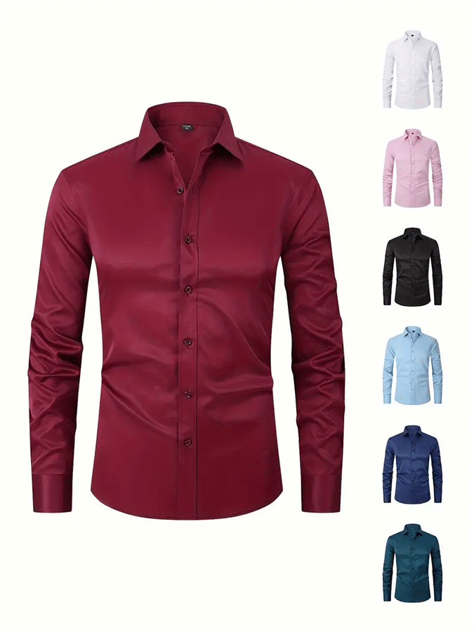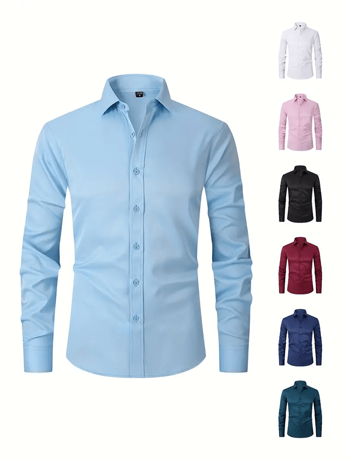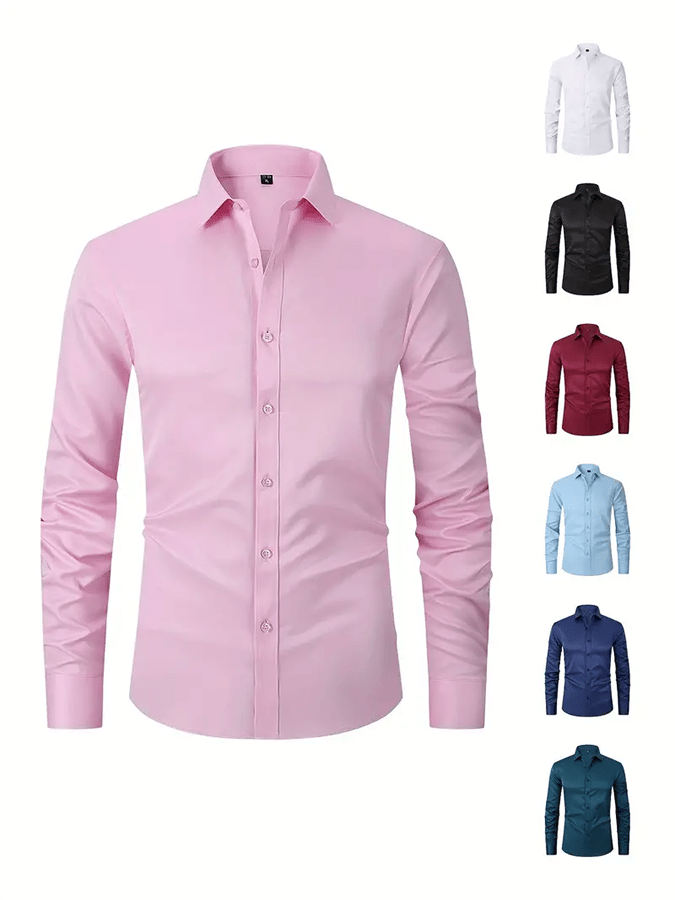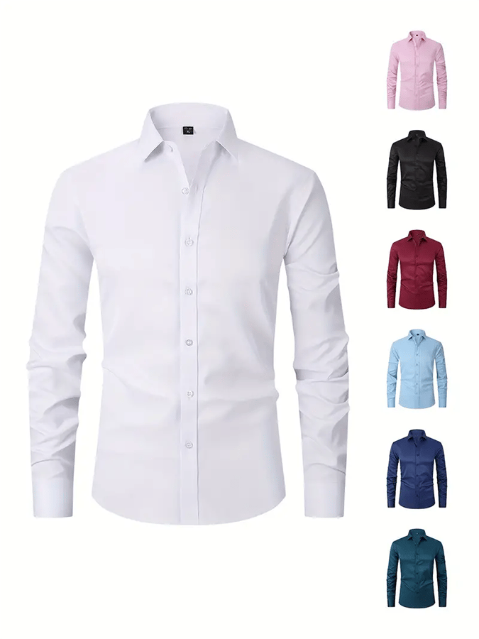 • Men's Solid Color Design Business Casual Shirt